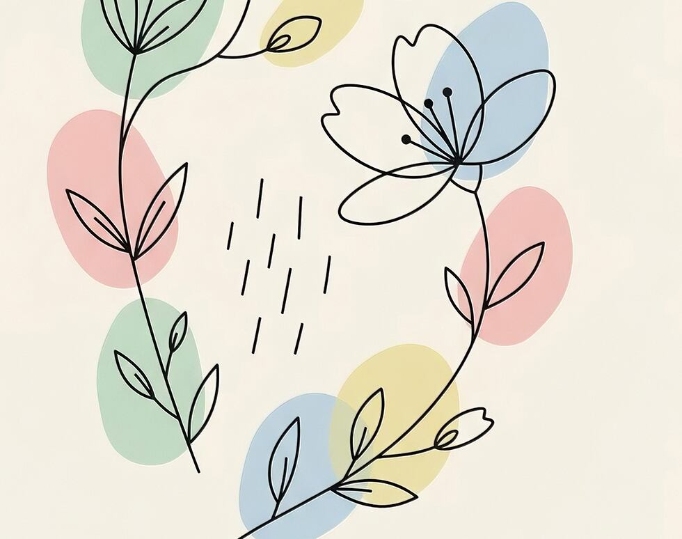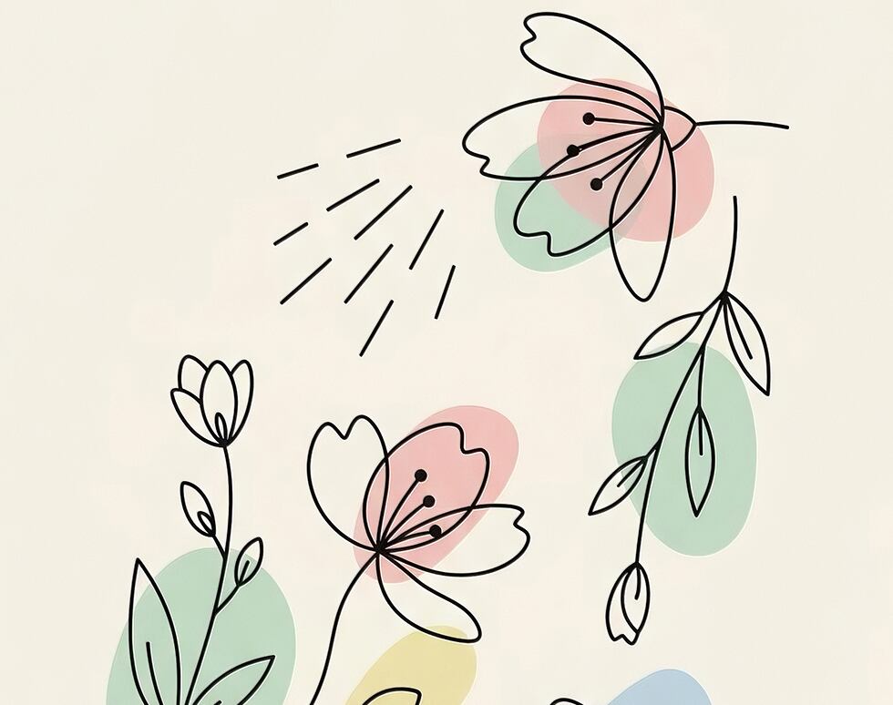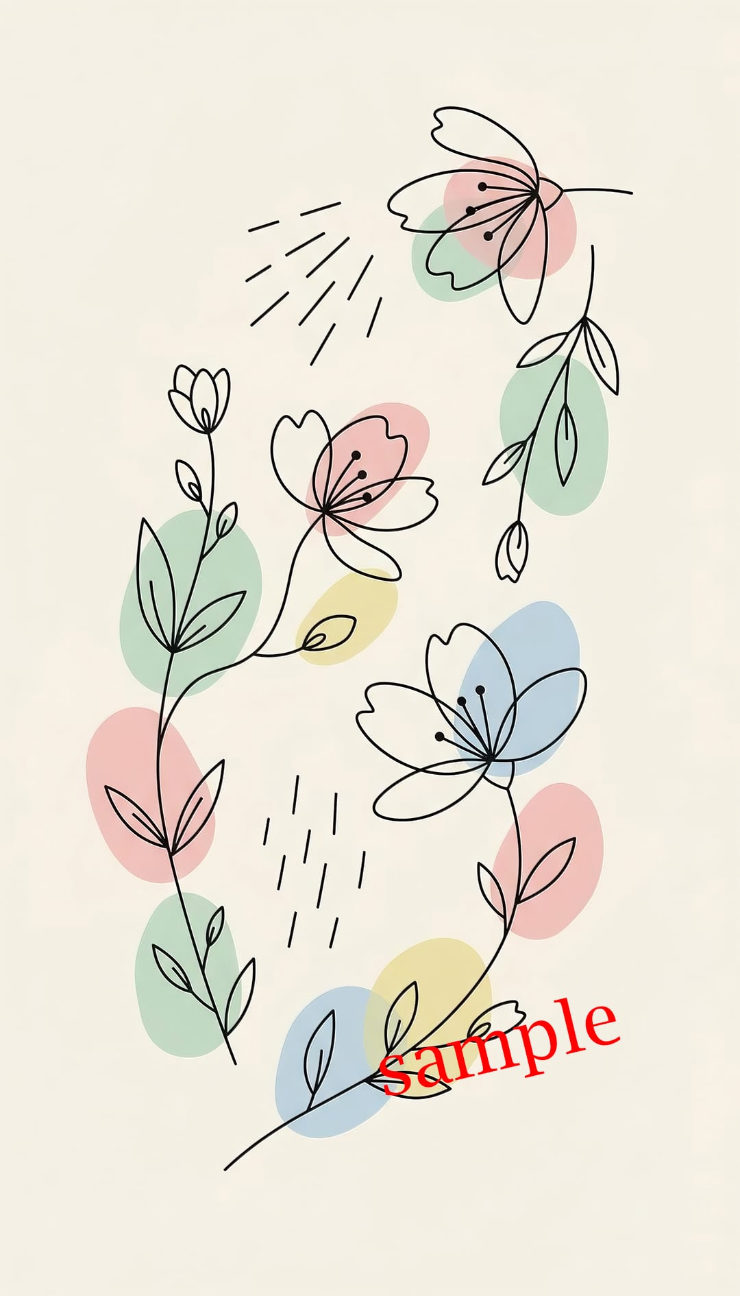 繊細な線画で描かれた花と、淡い色彩が調和するスマホ壁紙です。