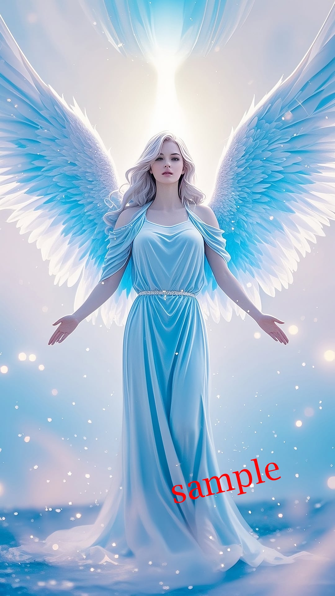 天から光が降り注ぎ、羽を大きく広げた天使が“ステージアップ”の象徴として描かれています。才能開花・運気上昇・転機に強いエネルギーを持つデザイン。