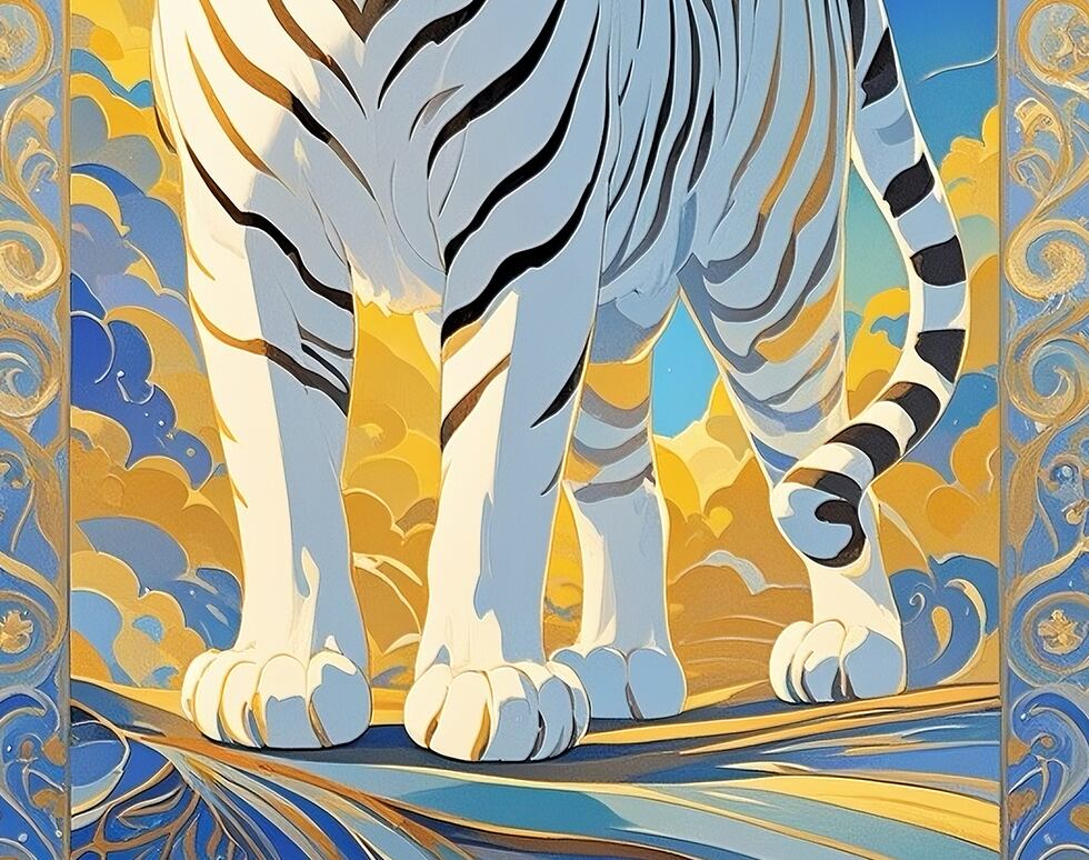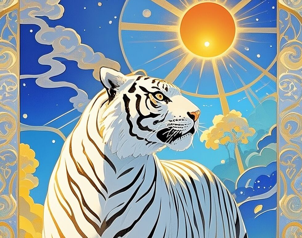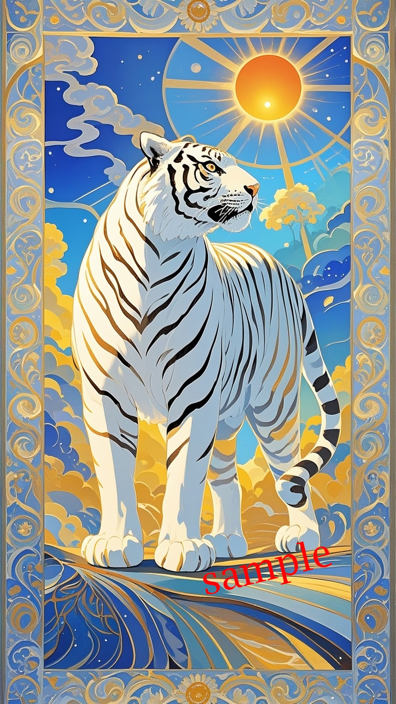 光を背に立つ白虎が、正義と守護を象徴する待ち受け画像。