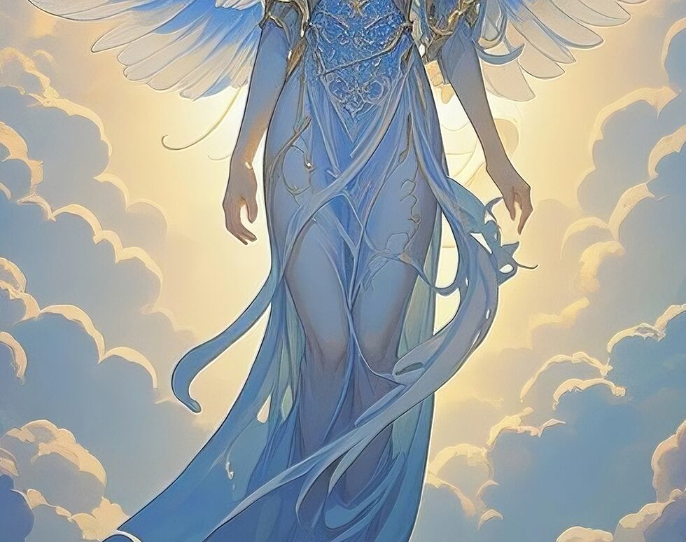 全体を包む淡い青と白のグラデーションは、心身の浄化や感情の安定を象徴します。