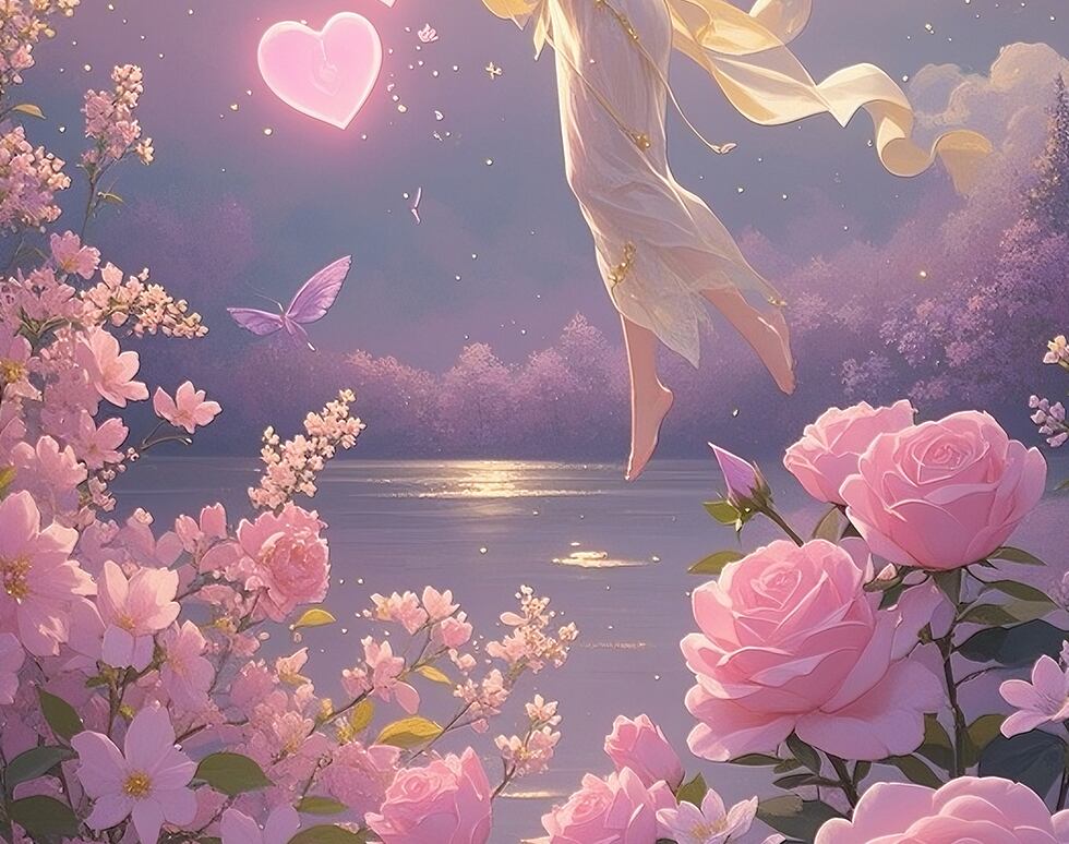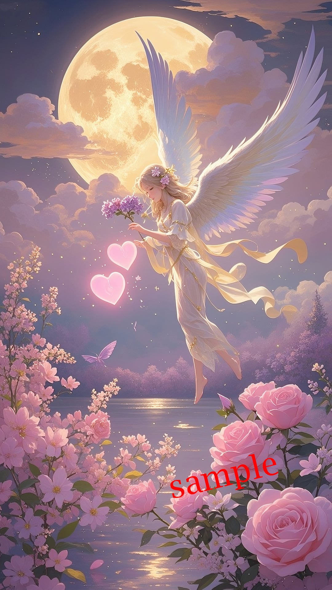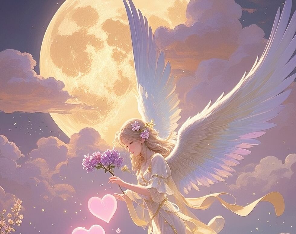 月明かりの中で舞う天使が、愛と守護のエネルギーを届ける幻想的な作品です。