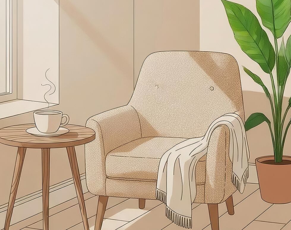 自然を感じる空間が、日常の緊張をそっと和らげてくれる一枚です。