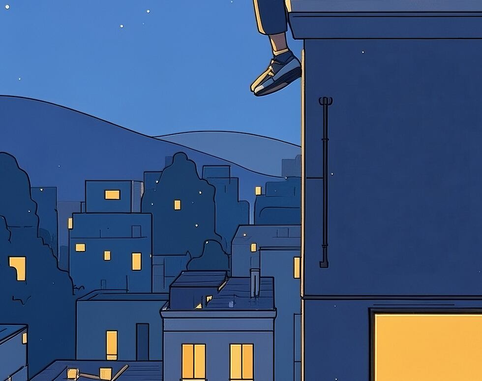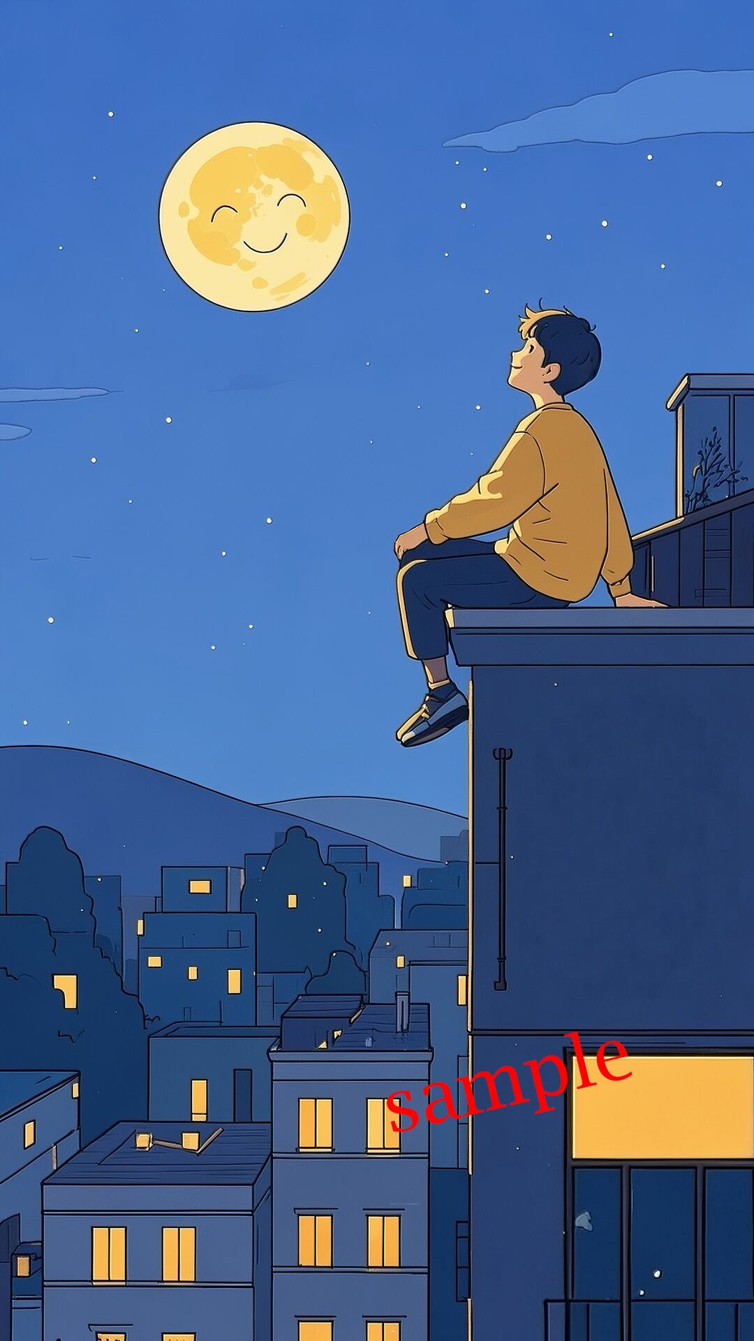 夜空に浮かぶ月を見上げるひとときを描いたスマホ壁紙です。
