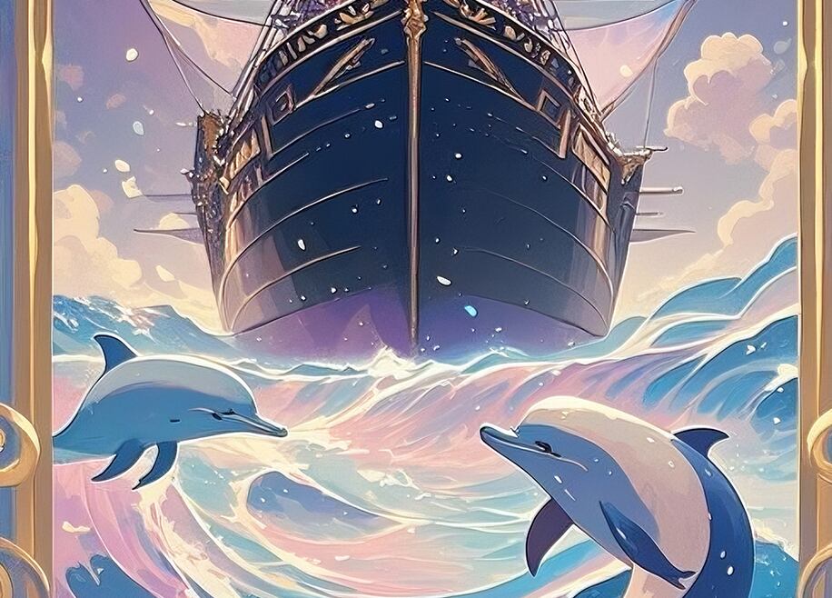 イルカが寄り添うことで安心感が加わり、心を整えながら未来へ進むイメージを表します。